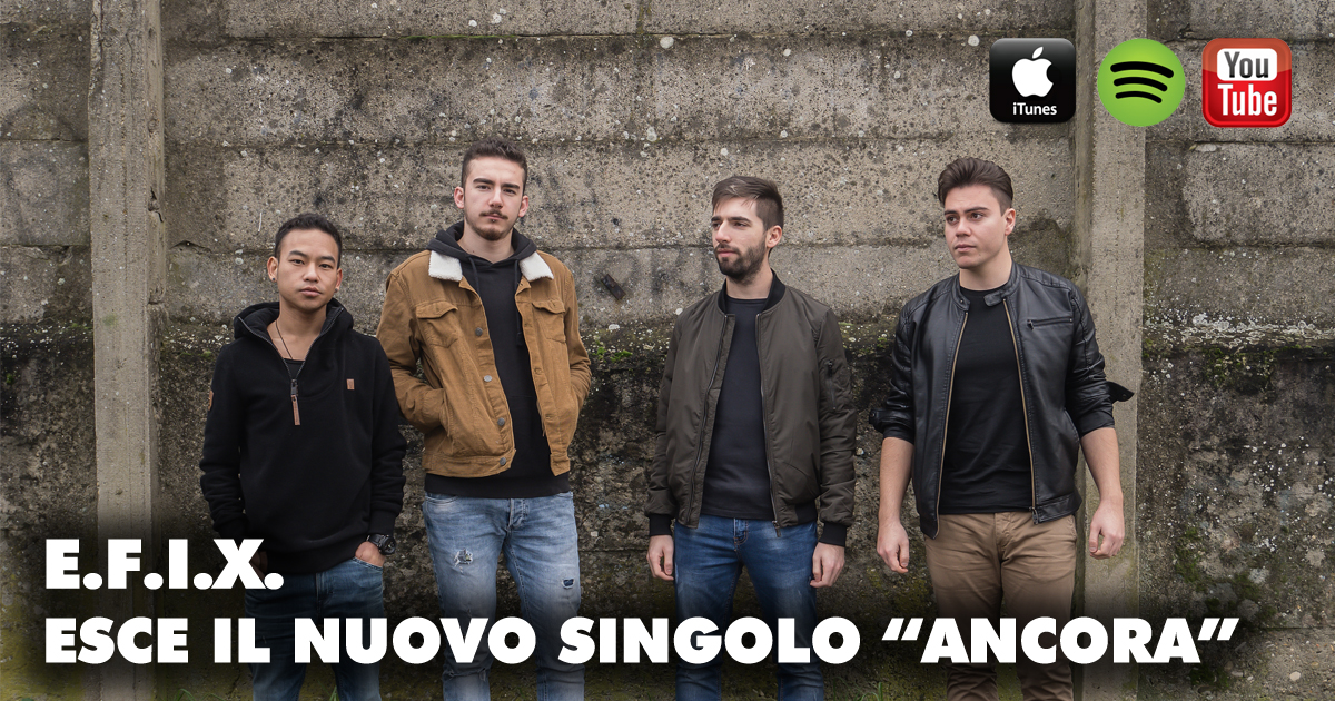Non si fermano gli E.F.I.X.! Esce ufficialmente su tutti gli store il loro nuovo singolo “Ancora”. Dopo aver esordito sul mercato discografico con l’album “Spot” lo scorso gennaio 2020 e ottenuto un ottimo successo di critica e passaggi in radio del singolo “Maschere”, ritornano sulla scena gli E.F.I.X. con “Ancora”, un brano nuovo di zecca da oggi in programmazione radiofonica.