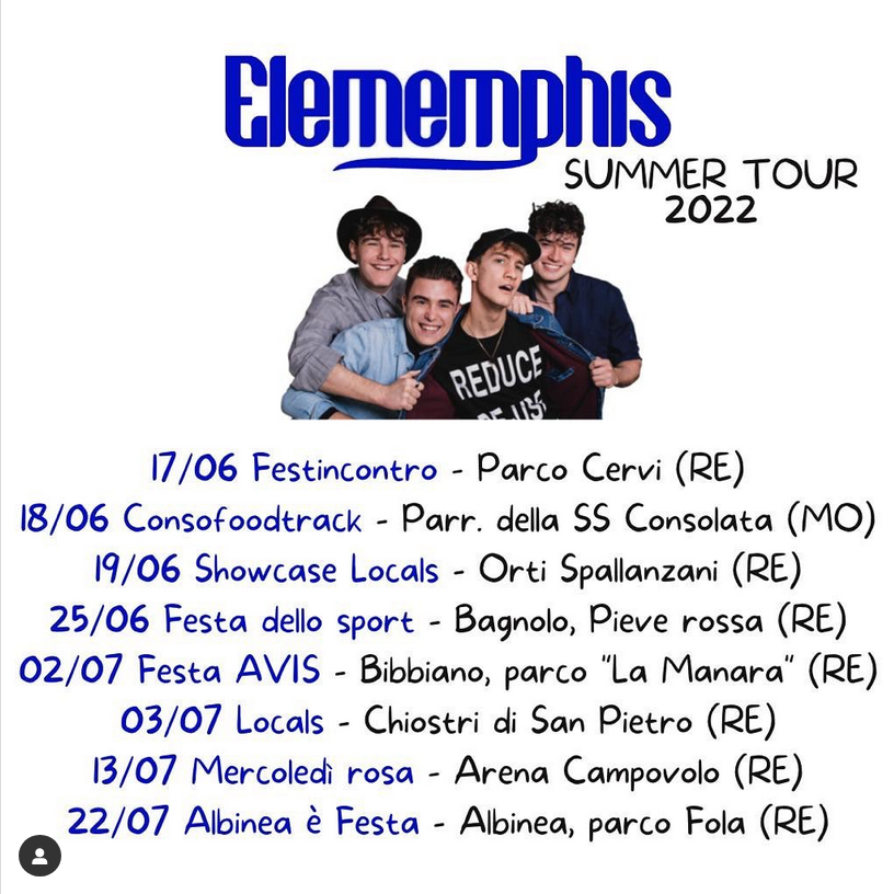 Elememphis. I ragazzi di Reggio Emilia tornano dal vivo quest'estate con un ricco tour: ecco le prime date annunciate.